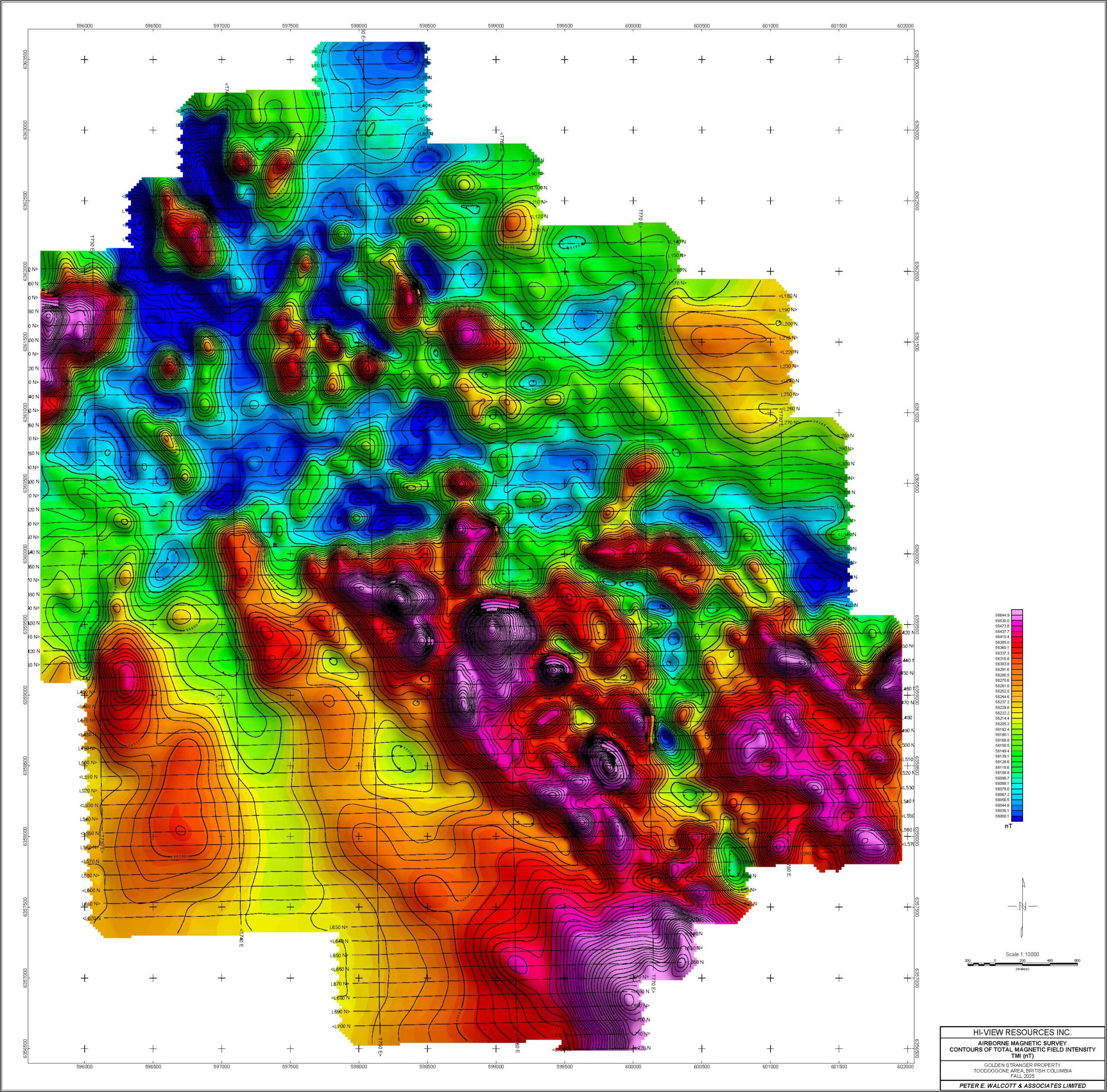 AIRBORNE MAGNETIC SURVEY CONTOURS OF TOTAL MAGNETIC FIELD INTENSITY TMI (nT)