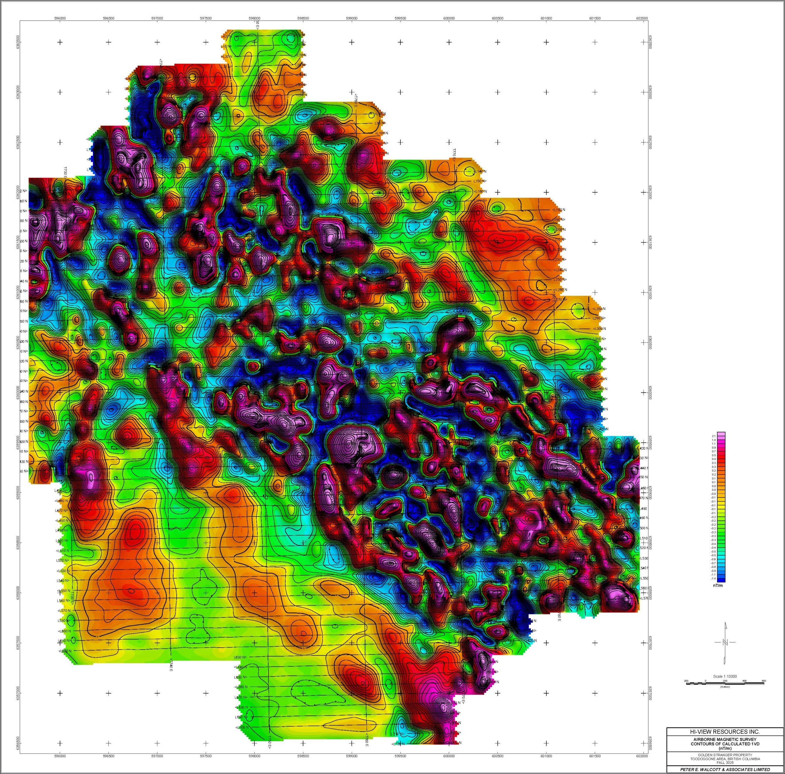 AIRBORNE MAGNETIC SURVEY CONTOURS OF CALCULATED 1VD (nT/m)
